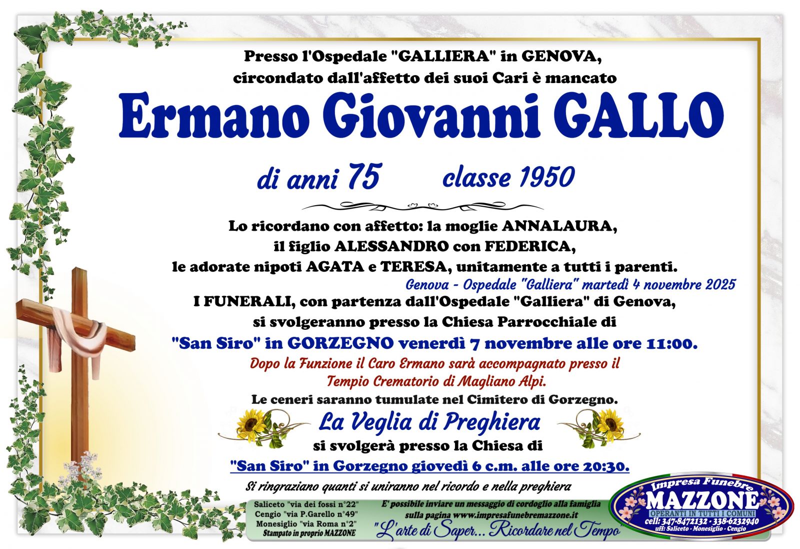 Lascia gratuitamente un messaggio di cordoglio, sarà nostra cura consegnarlo ai congiunti di Ermano Giovanni Gallo.