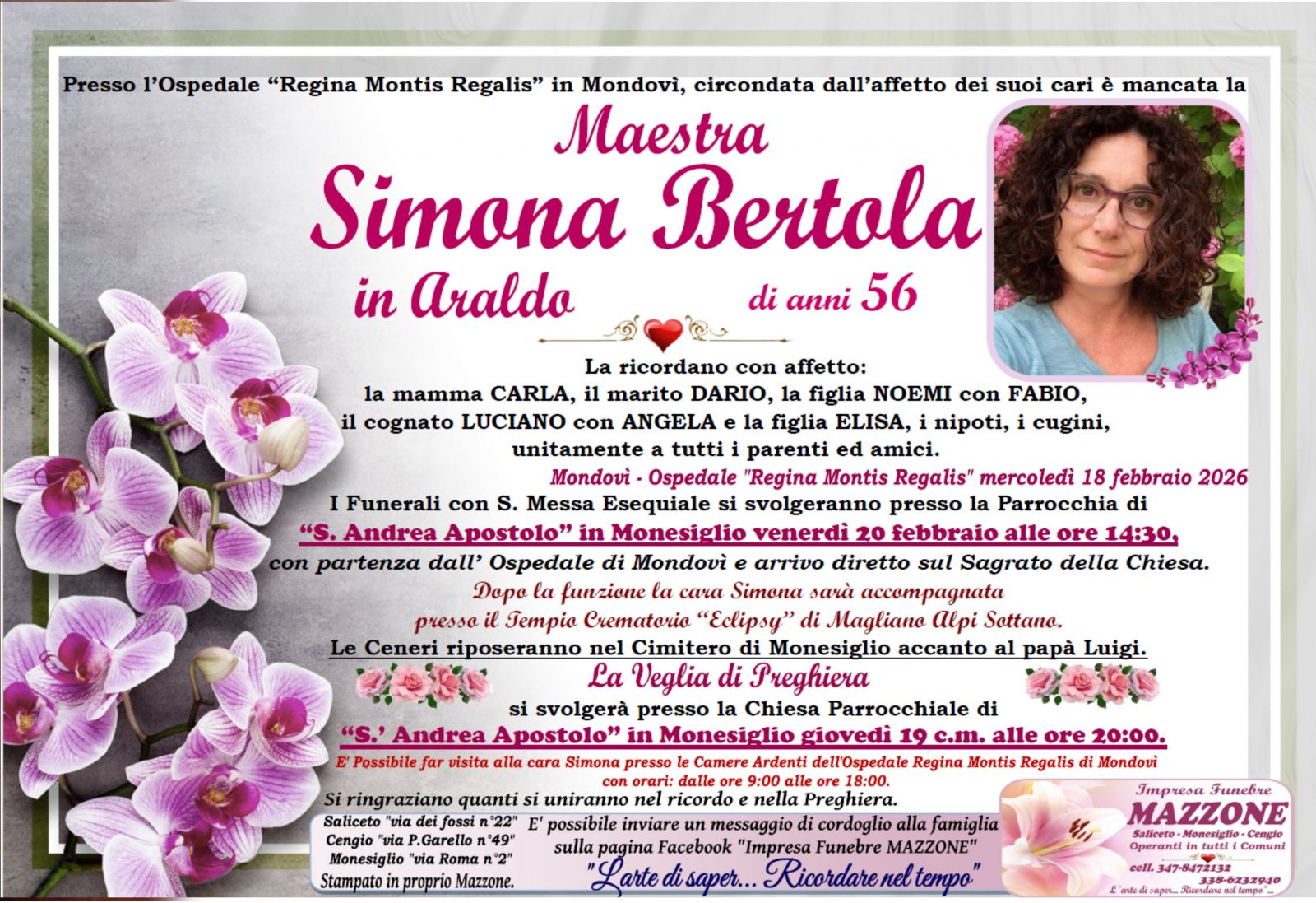 Lascia gratuitamente un messaggio di cordoglio, sarà nostra cura consegnarlo ai congiunti di Simona Bertola.